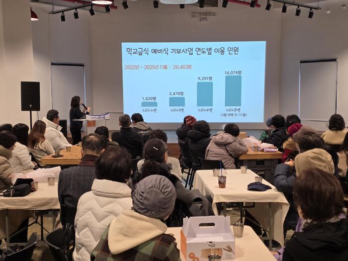[시흥=송윤근 기자] 경기 시흥시학교급식지원센터(이하, 센터)는 지난 12월 15일 청년협업마을 가치관 다목적홀에서 ‘2025년 학교급식 예비식 기부사업 연말 간담회’를 열고 한 해 동안의 성과를 공유했다.