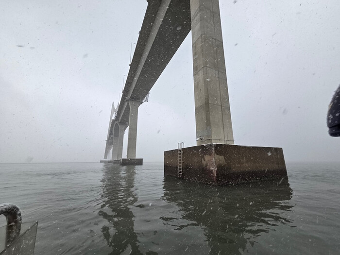 | ▲ 신안1004대교 사고 교각 현장(사진=목포해경). |