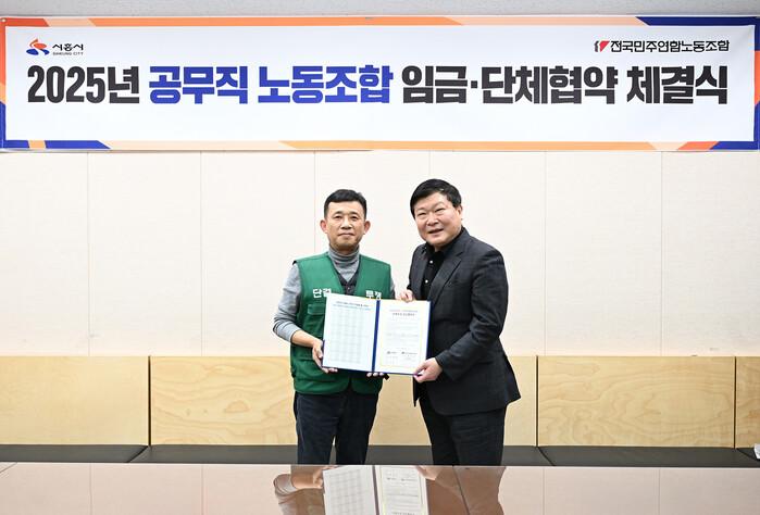| ▲ 2025년 공무직노동조합 임금단체협약 체결(오른쪽이 박승삼 부시장) /사진제공=시흥시 |