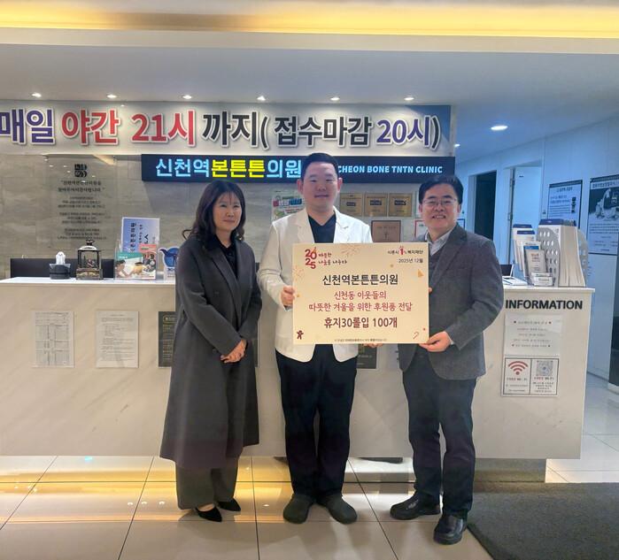신화철 신천동장은 “연말을 맞아 따뜻한 마음을 전해준 신천역본튼튼의원에 깊이 감사드린다”라며 “기탁된 물품은 도움이 필요한 가정에 소중히 전달하겠다”라고 말했다.