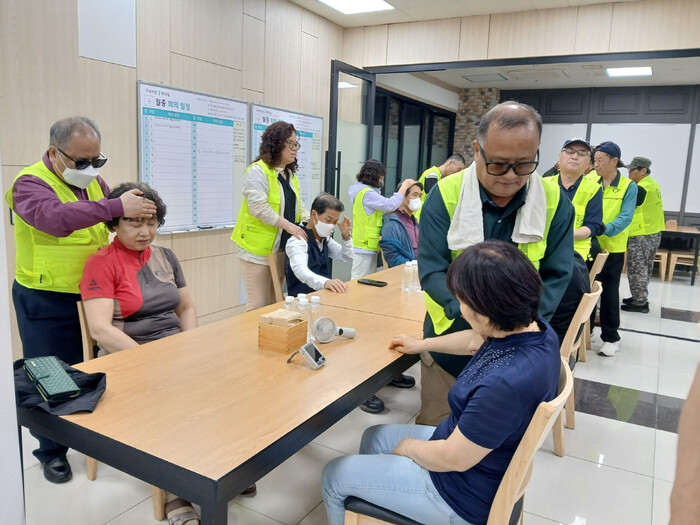 | ▲ 시각장애인 전문 안마사의 안마 봉사 진행 모습 /사진제공=시흥시 |
