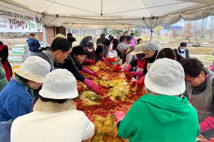 [시흥=송윤근 기자] 경기 시흥시 배곧2동 주민자치회는 지난 11월 29일 시민행복텃밭(배곧텃밭나라)에서 김장 행사를 열고, 직접 만든 김장 김치를 지역 장애우 단체에 전달하며, 이웃과 온정을 나눴다.