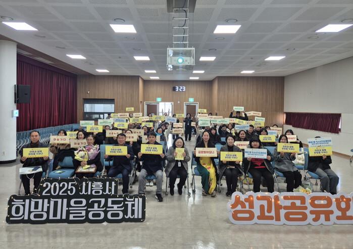 | ▲ 지난 12월 18일에 열린 '희망마을공동체 성과공유회'참석자들이 기념 촬영을 하고 있다 /사진제공=시흥시 |