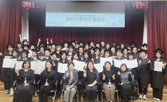 이번 종강식에는 한국어교육 프로그램에 참여한 결혼이민자 90여 명이 참석해, 한 학기 동안의 학습 성과를 공유하고 서로를 격려하는 시간을 가졌다.