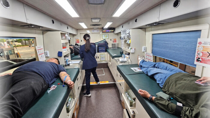 | 부평구시설관리공단 임직원들이 헌혈을 하고 있다. [사진=부평구시설관리공단] |