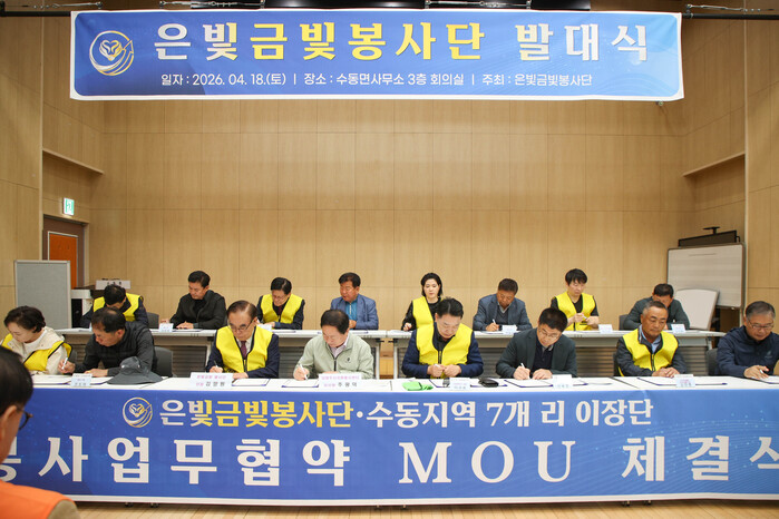 특히 발대식에는 운수리, 지둔리, 송천리, 수산리, 내방리, 외방리, 입석리 등 7개 하부 봉사단과 수동면 이장협의회 간 업무협약(MOU)을 체결했다. 이들은 협약을 통해 지역 공동체 가치를 더욱 단단하게 만드는 기반을 마련했다.