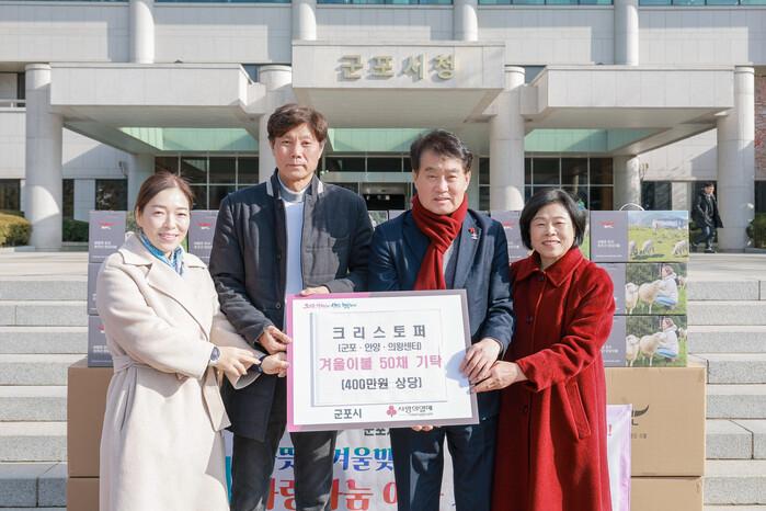 하은호 군포시장은 매년 겨울나기에 어려움이 있는 이웃을 위하여 사랑과 나눔을 실천하는 봉사단체 크리스토퍼에 진심으로 감사드리며, 필요한 분들에게 잘 전달하겠다”고 말했다