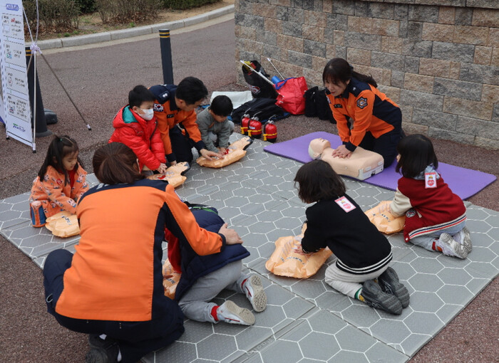 또 심정지 환자 발생 시 생존율을 향상하는 심폐소생술(CPR) 교육도 진행됐으며 구급대원 지도 아래 가슴압박 방법과 자동심장충격기 사용법 등의 실습이 진행돼 응급상황 대응능력을 키우는 계기가 됐다.