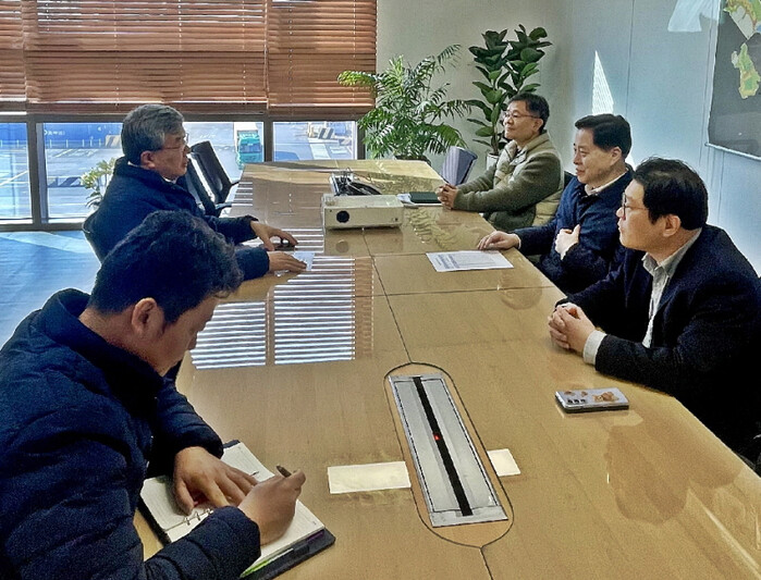 | ▲ 이경규 사장이 선광신컨테이너터미널을 방문, 컨테이너 터미널 야드 장치율 현황을 공유하고 있다. [사진=인천항만공사] |