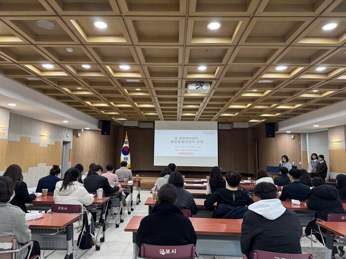 | ▲ 동 행정복지센터 통합돌봄 담당자 35명 대상 교육 진행 모습 /사진제공=군포시 |