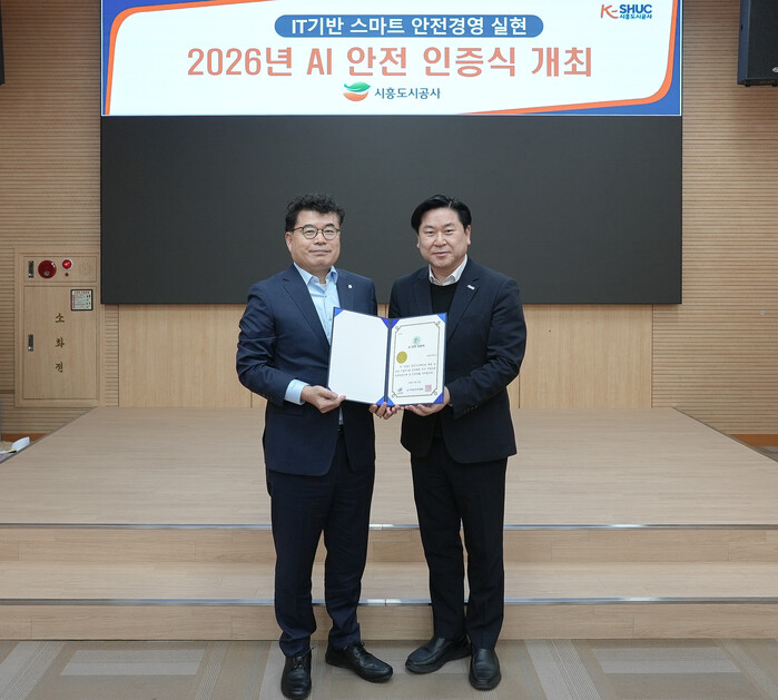 | ▲‘AI 안전’ 인증을 획득하고 인증식을 진행하고 있다 /사진제공=시흥도시공사 |