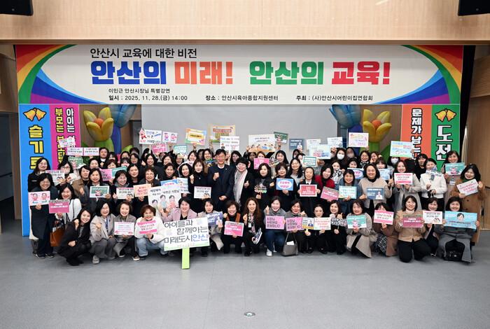 | ▲ 이민근 안산시장과 안산시어린이집연합회 소속 원장단들이 '슬기로운 원 경영' 교육을 진행하고 기념촬영을 하고 있다 /사진제공=안산시 |