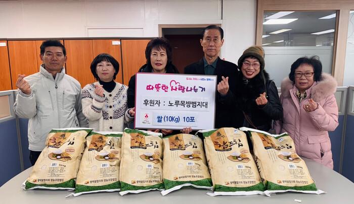 이번 전달된 쌀은 자율방범 순찰연합대 노루목지대 회원들이 뜻을 모아 마련한 것으로 관내 생활이 어려운 가정에 배부하여 취약계층의 식생활 지원에 활용될 예정이다.