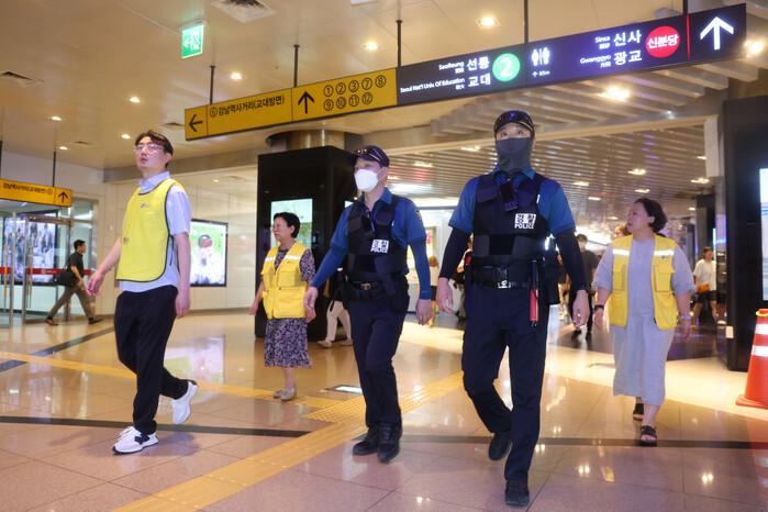 구는 경찰과 함께 오후 3시에 강남역, 한티역 출입구 및 상점가를 사전 점검하고, 저녁 9시 30분에 대치동 은마사거리 학원가 일대를 순찰했다