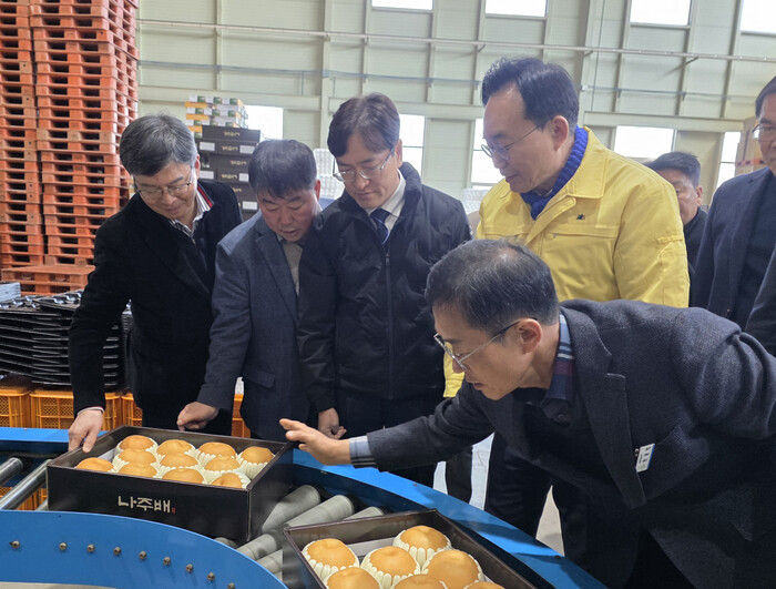 [남악=황승순 기자]농협전남본부(본부장 이광일)는 3일 설 명절을 앞두고 농산물 출하작업이 한창인 농협나주시조합공동사업법인(대표이사 배민호) 농산물 선별장을 방문해 과일 가격 및 산지동향 등을 살폈다.