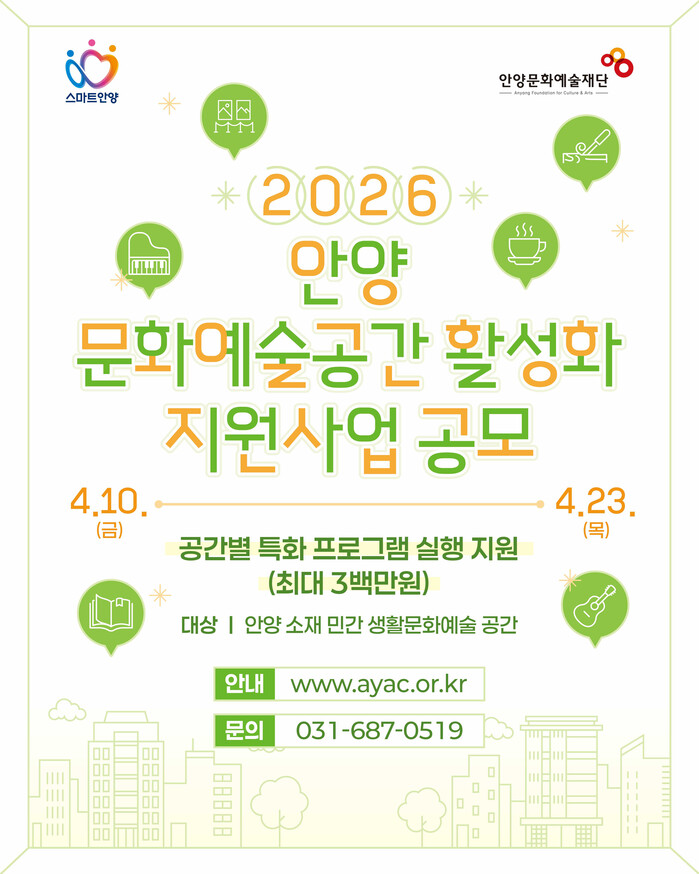 | ▲ 2026 안양 문화예술공간 활성화 지원사업 공모 홍보 포스터 /자료제공=안양시 |