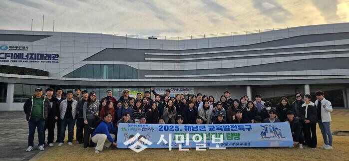 이번 연수에는 해남 관내 유·초·중·고 각 학교에서 추천된 64명의 교원이 참여해 제주도의 친환경 에너지 정책과 생태 보전 사례를 직접 체험함으로써 2026학년도 학교 교육과정에 적용할 수 있는 그린 교육 역량 강화를 위해 진행됐다.