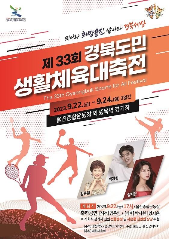 [안동=박병상 기자] 경북도는 9월 22일부터 24일까지 3일간 제33회 경북도민생활체육대축전을 울진종합운동장을 비롯한 종목별 경기장에서 개최한다고 밝혔다.