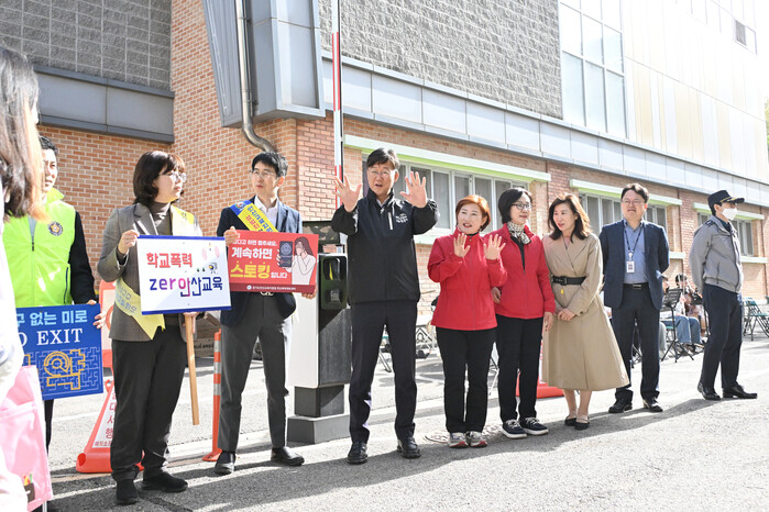 행사는 아침늘봄교실 현장 시찰을 시작으로 붕어빵 나눔, 학교폭력 예방 캠페인, 매화초 오케스트라 교실 학생들의 연주 순으로 진행됐다.