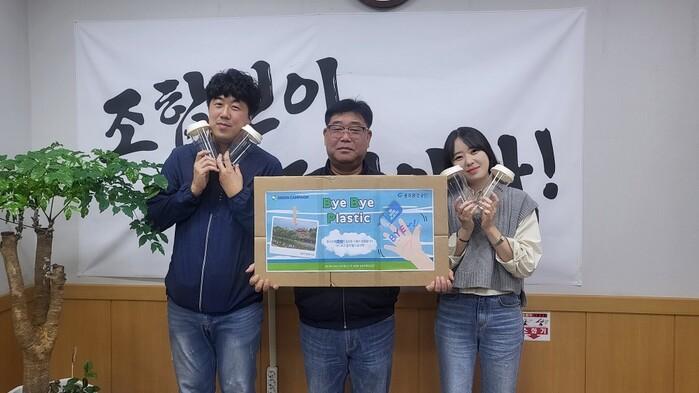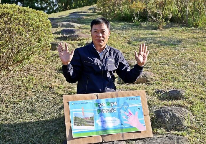 | ▲ 최향동 광주환경공단이사장 직무대행, 지난6일 '바이바이 플라스틱챌린지' 자발적 참여 기념촬영. / 광주환경공단 제공 |