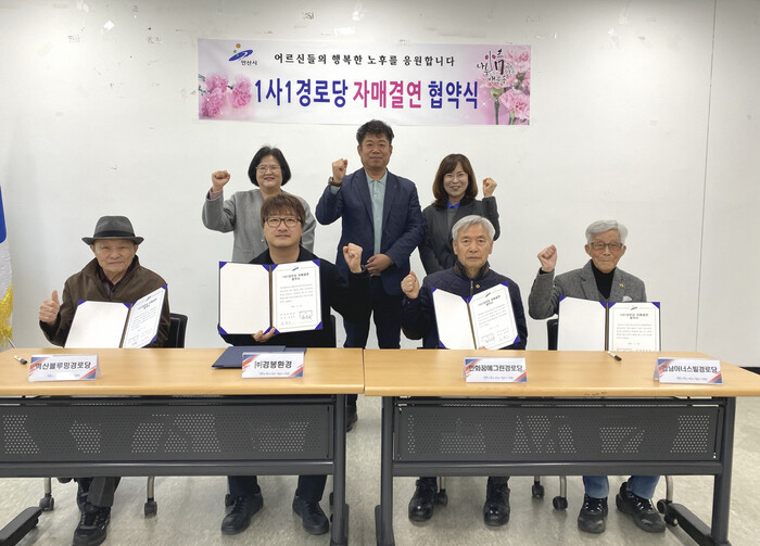 | ▲ 안산시 단원구 백운동 행정복지센터는 지난 25일 ㈜경봉환경과 관내 경로당 3개소(벽산블루밍아파트경로당, 경남아너스빌아파트경로당, 한화꿈에그린아파트경로당) 간 ‘1사1경로당’ 후원 협약을 체결했다 /사진제공=안산시 |