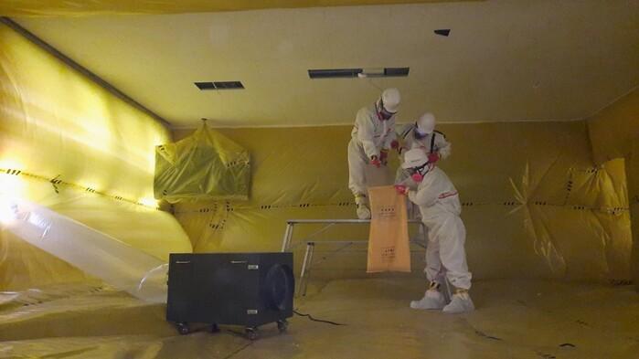 | ▲ 교실 천정 석면제거 작업 / 해남교육지원청 제공 |