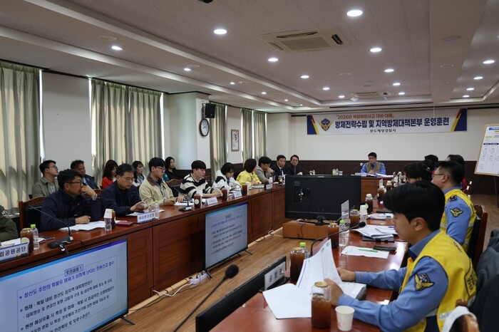 [완도=김현종 기자]완도해양경찰서(서장 김태환)는 대규모 해양오염 발생 시 신속한 대응을 위한 ‘2026년도 지역방제대책본부 운영 도상훈련’을 지난 2일 실시했다.