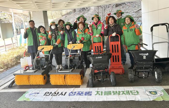 이날 활동은 겨울철을 맞이하여 안전하고 쾌적한 마을환경 조성과 제설장비 사전점검을 위해 마련된 것으로, 설철희 안산시자율방재단장을 비롯한 성포동 자율방재단원 15명이 참여해 소형 제설기, 소형 살포기, 블로워 등 각종 장비의 작동 여부를 확인하고, 작동법을 교육하는 시간을 가졌다.
