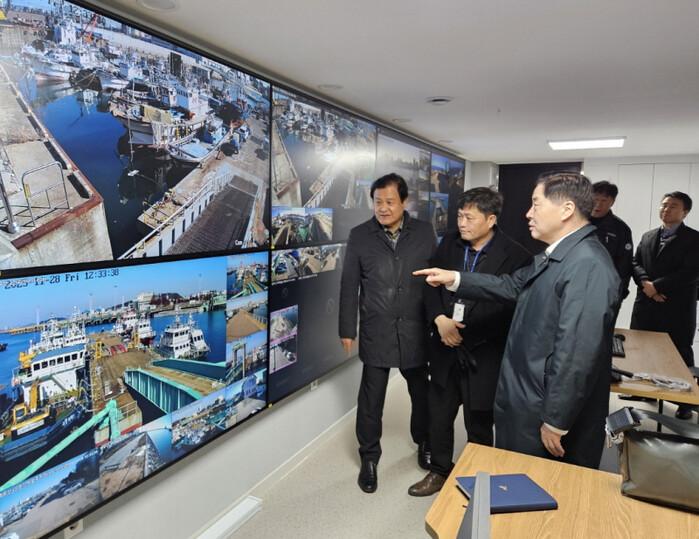 | 이경규 사장이 ‘인천항 통합관제 시스템’을 점검하고 있다. (사진=인천항만공사) |
