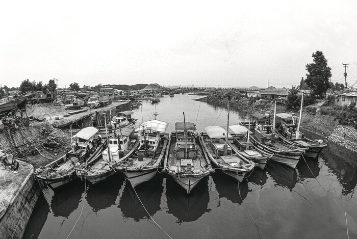 | ▲ 1993년도 안산시 사리포구 전경, 시화방조제 공사 직전의 어촌 풍경 모습 /사진제공=안산문화원 |