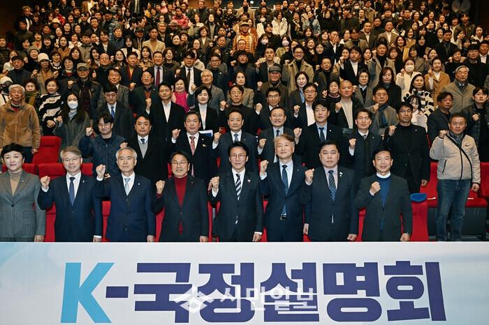 | ▲ 광주시 서구, 지난 4일 오후 서빛마루문화예술회관에서 김민석 국무총리 초청 ‘K-국정설명회’ 개최 자료사진 / 앞줄 왼 쪽부터 신수정 광주광역시의장, 민형배 국회의원, 양부남 국회의원, 강기정 광주광역시장, 김민석 국무총리, 김이강 서구청장, 오른 쪽 첫 번째 박병규 광산구청장 /광주광역시 서구청 제공 |