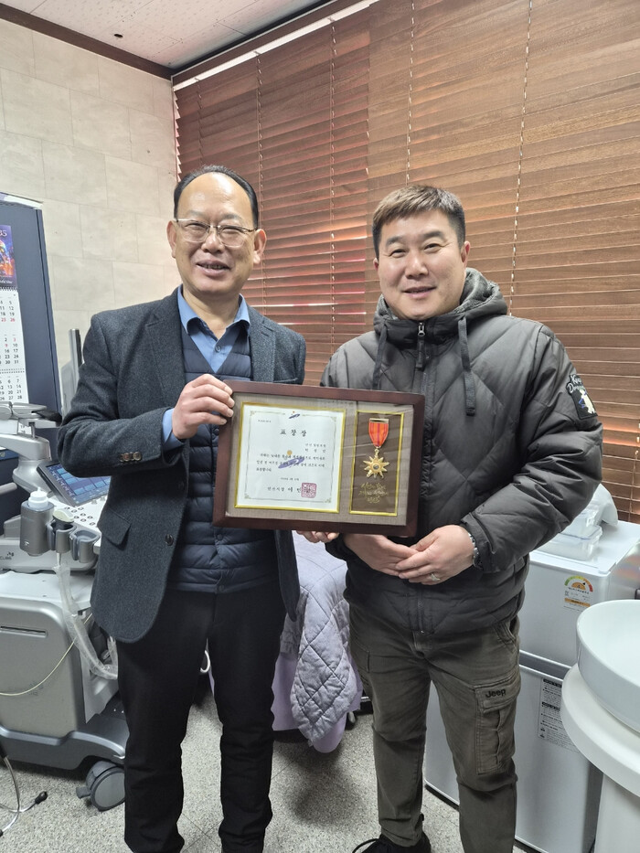 | ▲‘신길히어로’로 성민의원을 선정하고 표창장을 수여했다 /사진제공=안산시 |