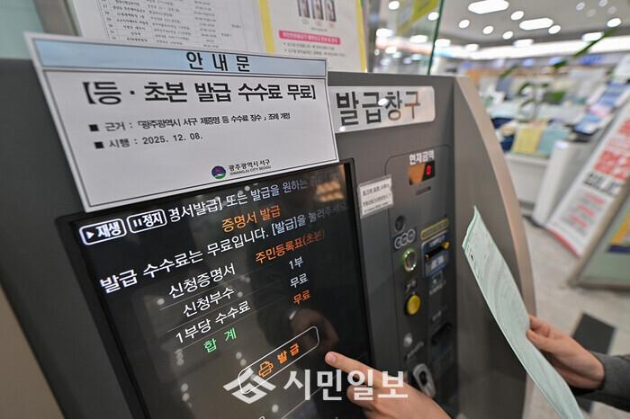 [광주=정찬남 기자] 광주광역시 서구가 지역 주민의 제증명 발급 수수료 부담 해소에 나섰다. 서구는 관내 무인민원발급기에서 주민등록 등·초본을 무료 발급한다.