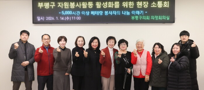 | 부평구 자원봉사활동 활성화 소통회의 참가자들이 포즈를 취하고 있다. [사진=부평구의회] |