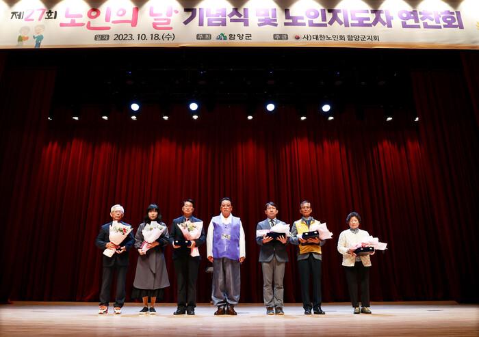 함양군이 주최하고 (사)대한노인회 함양군지회(회장 이영일)에서 주관한 이날 행사는 대한노인회 안의실버 색소폰 동아리 봉사단의 색소폰연주, 대한노인회 체조팀(다볕Silver)의 건강체조 등 흥겨운 식전공연이 행사 시작을 알렸다.