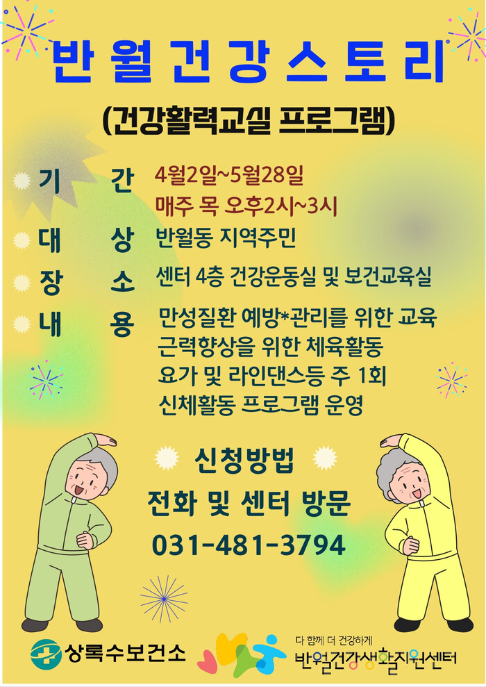 프로그램은 3월 26일부터 반월건강생활지원센터로 방문 또는 전화로 신청할 수 있다.