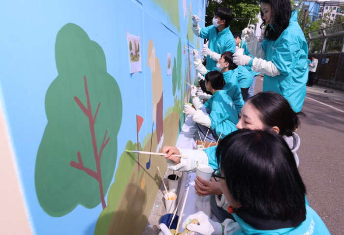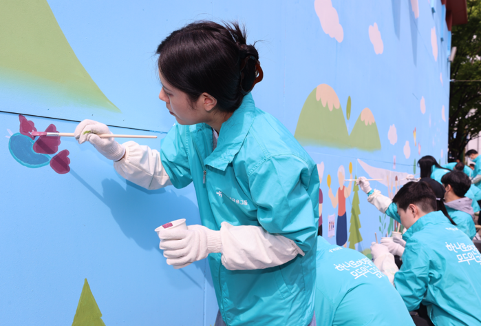 인천 청라 하나드림타운 완공에 앞서 진행된 이번 봉사활동은 올해 9월 그룹의 본점 소재지를 인천 청라국제도시로 이전하는 하나금융그룹이 벽화조성을 통해 인천지역 환경개선에 기여하기 위해 마련됐다.