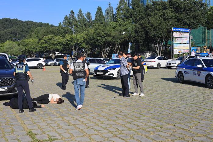 이번 훈련은 합천경찰서 소속 지역경찰·형사 등이 참여하여 “합천군 정양 레포츠 공원에서 피서객을 차량으로 충격하고, 주변 사람들에게 흉기를 들고 위협하는 가상 사건”에 대해 총력대응 체계를 구축하고, 신속하게 현장 출동 후 일반 시민들을 분리하고 범인을 제압하는 훈련을 통한 현장대응력 강화를 위해 진행하였다.
