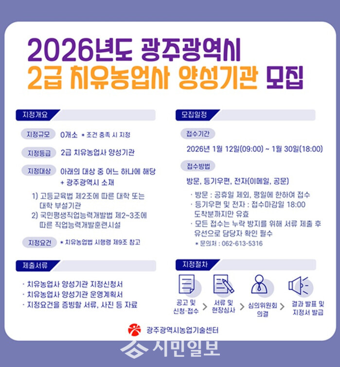 광주시는 서류·현장심사와 심의위원회 의결 등을 거쳐 상반기 중 양성기관을 지정할 계획이다.