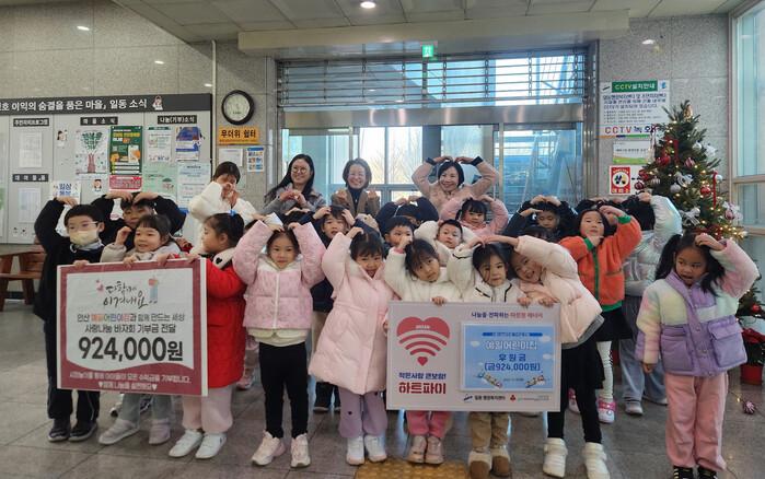 [안산=송윤근 기자] 경기 안산시(시장 이민근) 상록구 일동 행정복지센터는 지난 18일 예일어린이집(원장 이경아) 원아 25명과 교사, 원장이 함께 방문해 후원금 92만 4천원을 기탁했다고 22일 밝혔다.