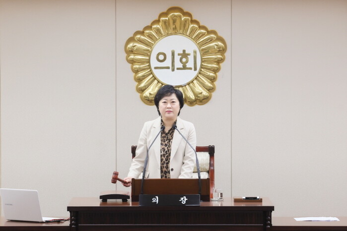 | 안애경 의장이 부평구의회 제275회 임시회 폐회를 선언하고 있다. [사진=부평구 의회] |