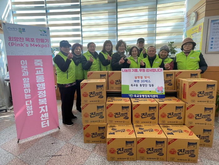[목포=황승순 기자]죽교동 통장단은 지난 9일, 죽교동 행정복지센터를 방문해 설 명절을 앞두고 지역 내 취약계층 지원을 위한 라면 20박스를 후원했다.