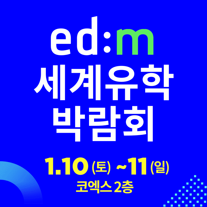 주최사인 edm유학센터는 15년 연속 소비자가 선정한 1위 유학원으로, 약 8만 명의 누적 수속 고객을 기반으로 1:1 관리와 체계적인 수속 시스템을 운영하고 있다. 해외 직영 지사와 글로벌 센터를 통해 출국 후 현지 생활 지원도 제공한다.