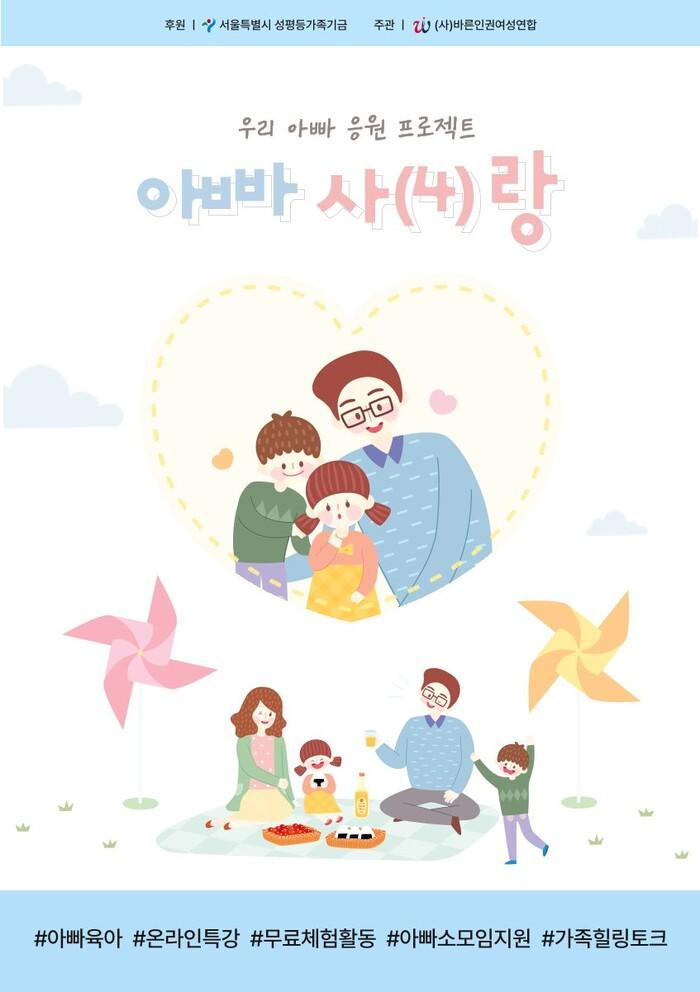 사단법인 바른인권여성연합(이하 여성연합)은 서울시와 함께 변화하는 육아 상황에 맞추어 아빠들의 육아 참여를 돕고 교육하는 우리 아빠 응원 프로젝트 ‘아빠사랑’ 사업을 진행한다.