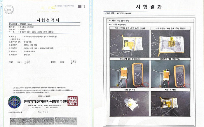 (주)스마트이지 관계자는 “최근 성능을 확인할 수 없는 중국 제조 제품 등 저가형파우치 제품들이 늘어나고 있다”라며, “기내용보조배터리파우치를 구비하는 경우 안전과 직결되는 제품의 경우 꼭 성능시험에 합격한 규격제품을 사용하도록 소비자의 주의가 필요하다”고 전했다.