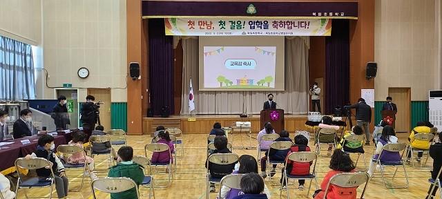 김을용 북일초등학교장은 “초등학교 1학년에 입학한 15명의 학생과 유치원에 입원한 18명의 학생에게 축하를 함께 해 주신 전라남도교육청과 해남교육지원청에 감사하다”고 인사를 전하면서 “많은 학생들이 우리학교에서 함께 할 수 있어서 기쁘고 입학생들이 안전하고 즐거운 학교생활을 하길 바란다.”고 말했다.