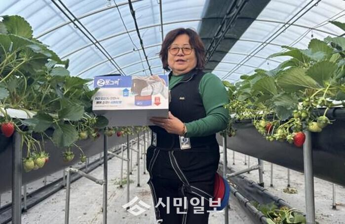 | ▲ 한국여성농업인 강진군연합회 배양임 회장, 강진군이 지원한 농작업용 편의의자 착용 자료사진 / 강진군 제공 |