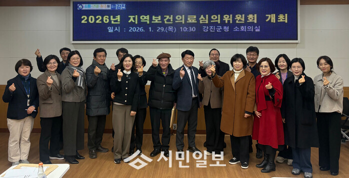 | ▲ 강진군, 지난 1월 29일 군청 소회의실에서 2026년 제8기 4차년도 강진군 지역보건의료계획 심의 후 기념촬영 / 강진군 제공 |