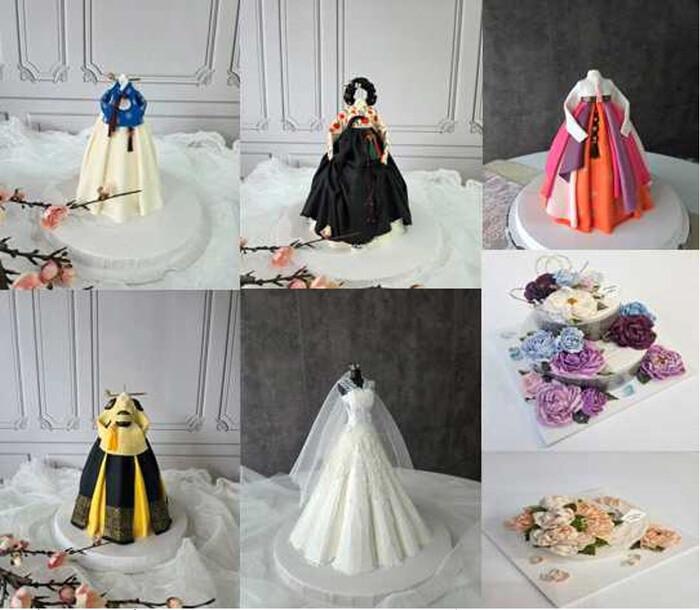 한복 케이크뿐 아니라 앙금꽃으로 장식한 떡케이크, 웨딩드레스 케이크도 고객들의 관심을 끌고 있다. 웨딩드레스 케이크는 드레스의 문양과 화려한 디자인이 특징이며, 떡케이크는 전통 떡과 앙금을 활용해 꽃 모양으로 완성되어 작품 같은 디저트를 선보인다. 이러한 제품들은 생일, 돌잔치, 혼례, 각종 행사에서 특별한 선물로 주문이 이어지고 있다.