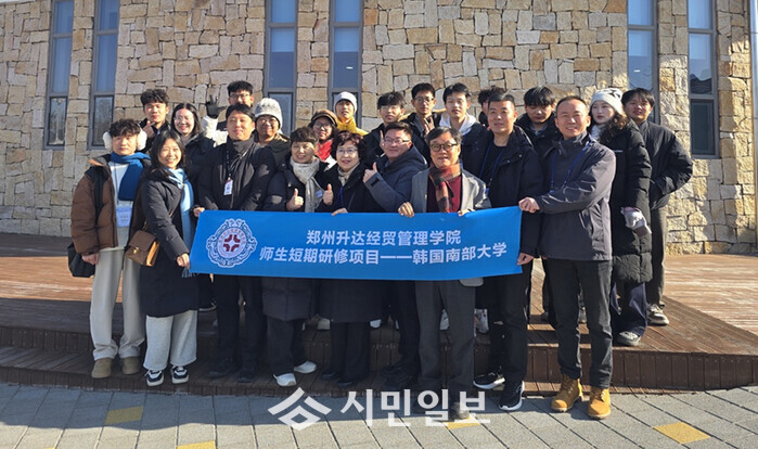 | ▲ 강진군문화관광재단과 남부대가 공동 초청한 중국 허난성 승달대학교 학생들이 강진군 병영면 소재 하멜기념관 일원에서 기념촬영을 하고 있다. / 강진군문화관광재단 제공 |